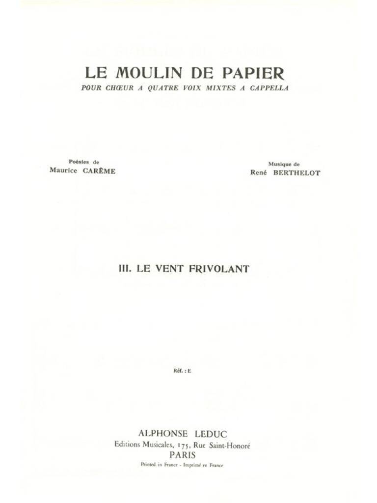 RENE BERTHELOT: LE MOULIN DE PAPIER NO.3: LE VENT FRIVOLANT (CHORAL-MIXED A CAPPELLA) CHANT