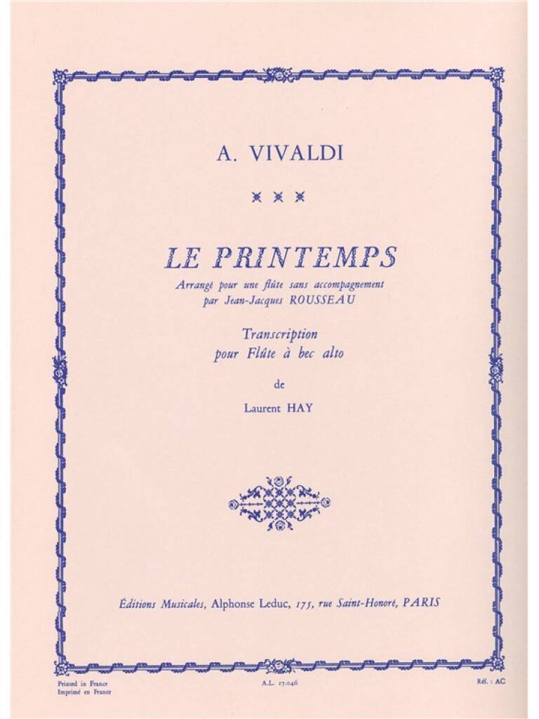 ANTONIO VIVALDI: 'SPRING' IN E MAJOR ARRANGED FOR ALTO RECORDER SOLO