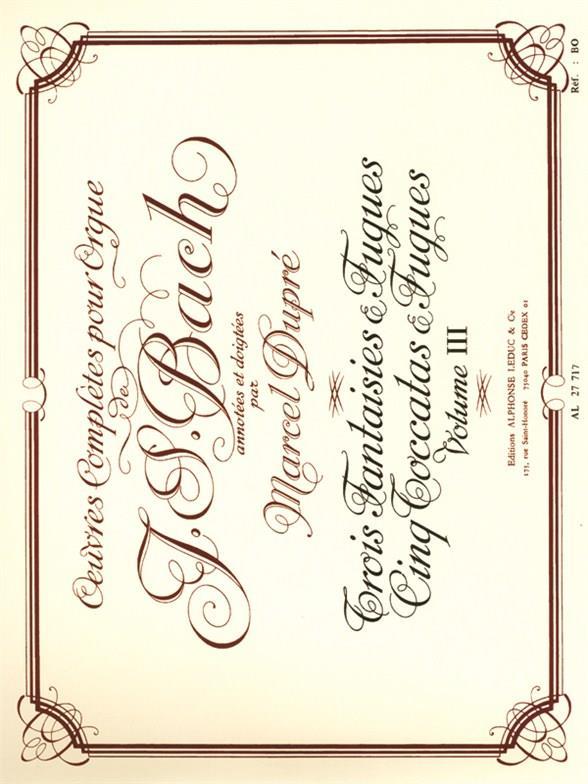 JOHANN SEBASTIAN BACH OEUVRES COMPLETES POUR ORGUE VOLUME 3 - 3 FANTAISIES ET FUGUES /