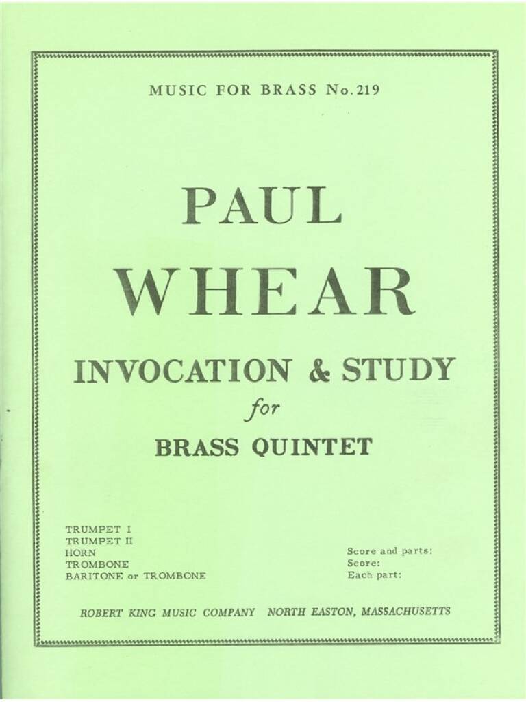 PAUL W. WHEAR: INVOCATION AND STUDY (QUINTET-BRASS)