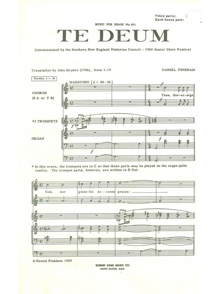 DANIEL PINKHAM: TE DEUM (CHORAL-FEMALE ACCOMPANIED)