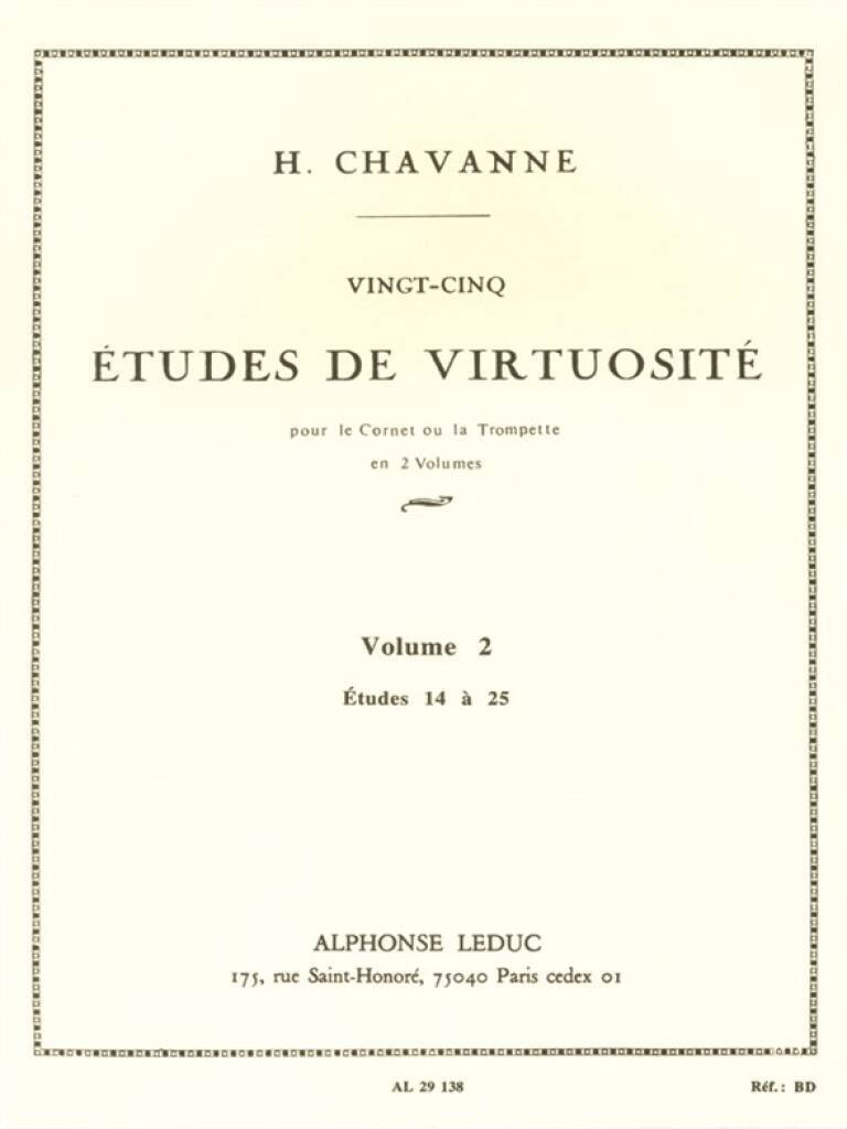 CHAVANNE 25 ETUDES DE VIRTUOSITE VOLUME 2 14 A 25 TRUMPET OR CORNET BK TROMPETTE