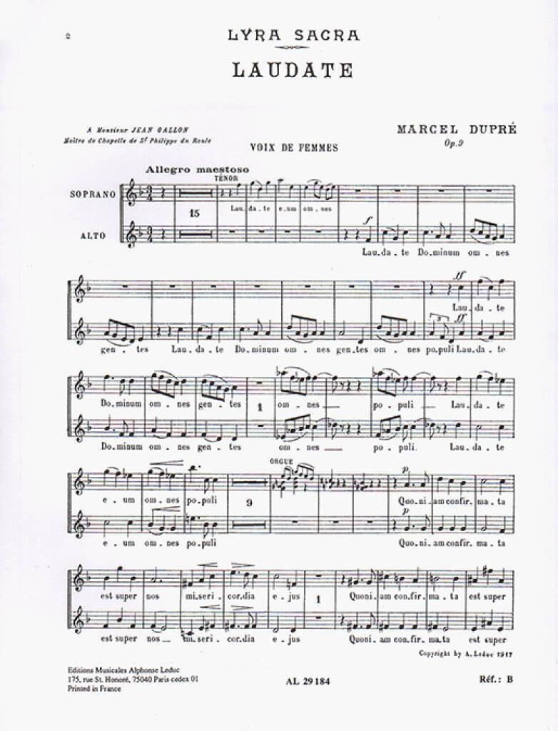 MARCEL DUPRE: LAUDATE DOMINUM OP. 9 NO.4 (SA CHORUS PARTS)