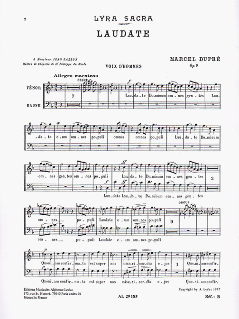 MARCEL DUPRE: LAUDATE DOMINUM OP. 9 NO.4 (TB CHORUS PARTS)