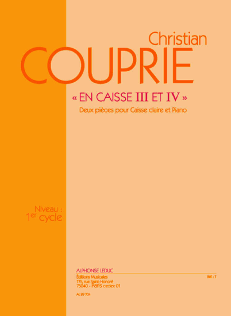 COUPRIE: EN CAISSE III ET IV (CYCLE 1) DEUX PIECES POUR CAISSE CLAIRE ET PIANO
