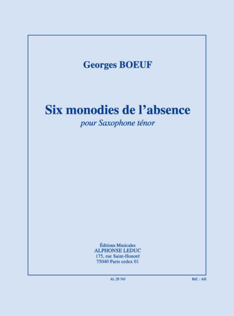 BOEUF: SIX MONODIES DE L'ABSENCE POUR SAXOPHONE TENOR