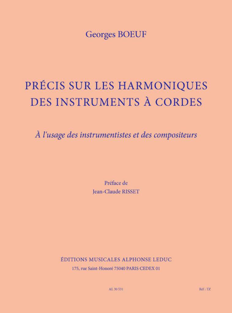 BOEUF: PRECIS SUR LES HARMONIQUES DES INSTRUMENTS A CORDES A L'USAGE DES INSTRUMENTISTES ET DES COMP