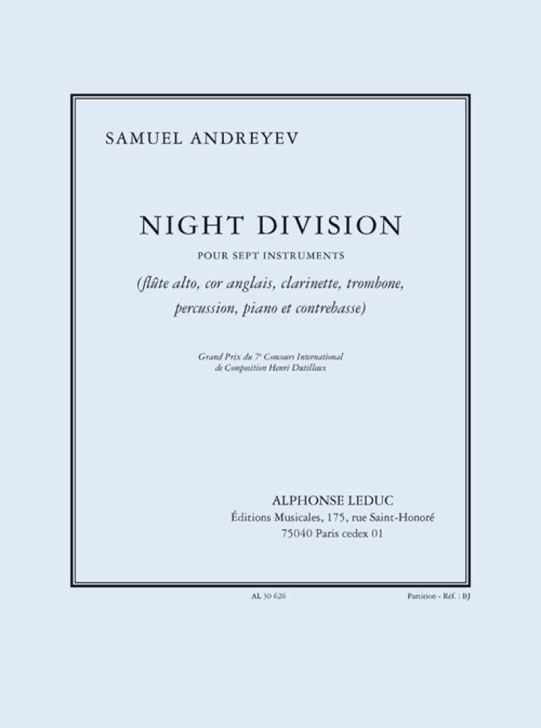 ANDREYEV: NIGHT DIVISION POUR 7 INSTRUMENTS (FLUTE ALTO, COR ANGLAIS, CLARINETTE, TROMBONE, PERCUSSI