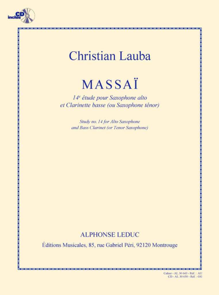 LAUBA MASSAI 14E ETUDE DUO AVEC SAXOPHONE BOOK/CD