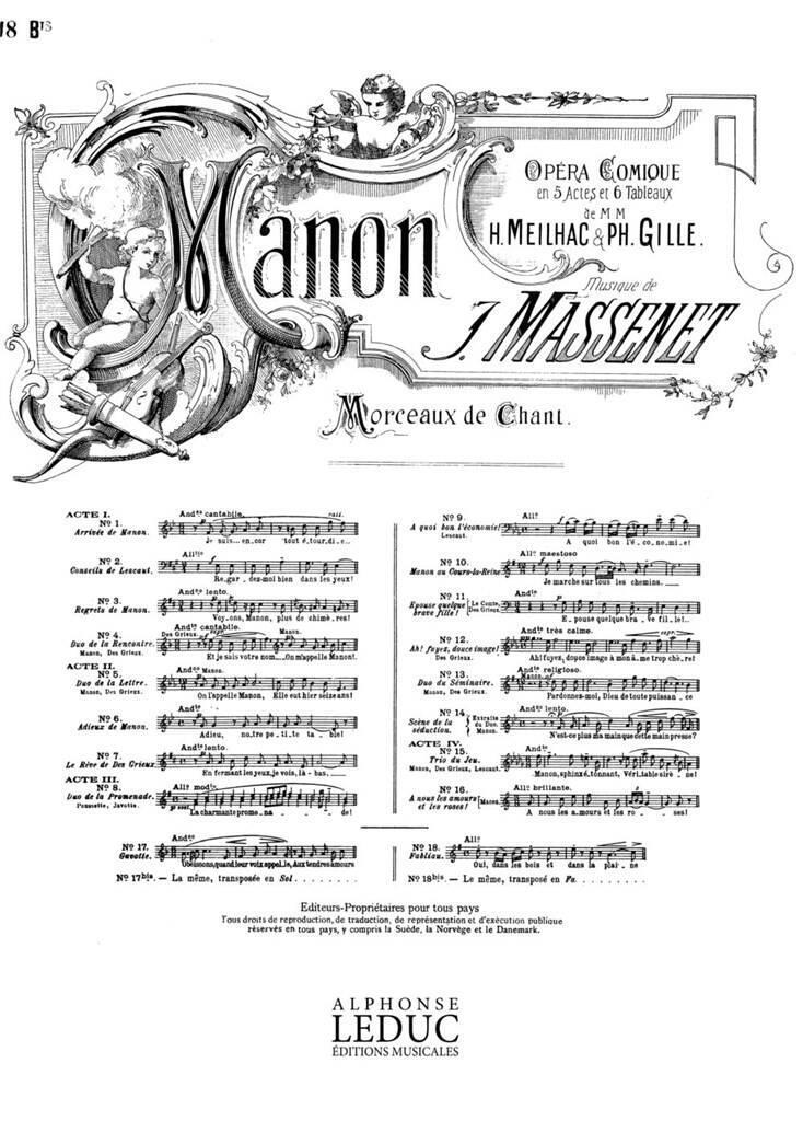 JULES MASSENET: AIR DE 'MANON' NO.18 BIS: FABLIAU (MEZZO) (VOICE & PIANO)