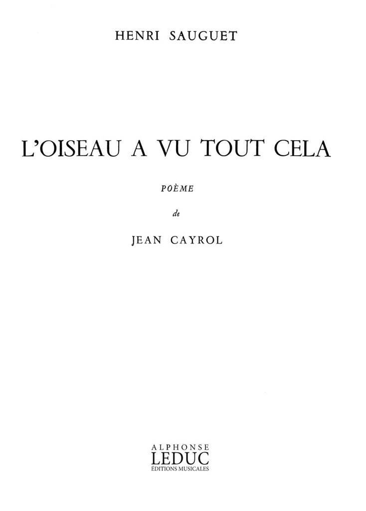 HENRI-PIERRE SAUGUET: L'OISEAU A VU TOUT CELA (BAR) (VOICE & ORCHESTRA)