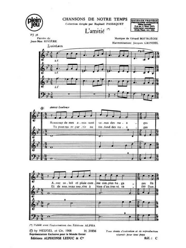BOURGEOIS RIVIERE CHANSONS DE NOTRE TEMPS PJ36 L'AMITIE 4 PART CHORAL