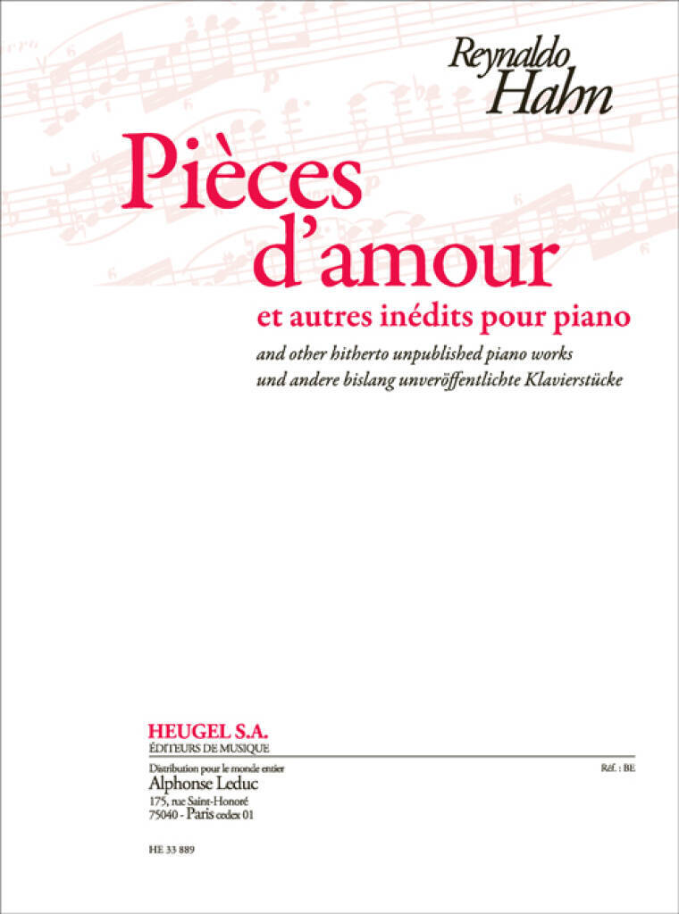 HAHN: PIECES D'AMOUR ET AUTRES INEDITS POUR PIANO PIANO