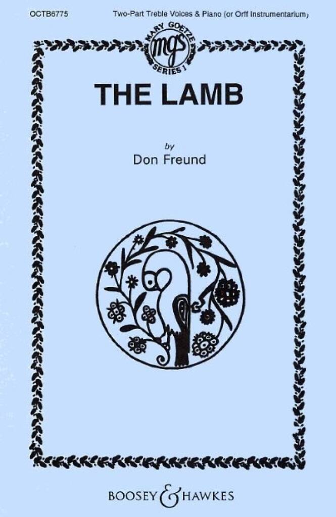No. 1 The Lamb. 2-part treble voices and piano (Orff instruments). Partition de chœur.