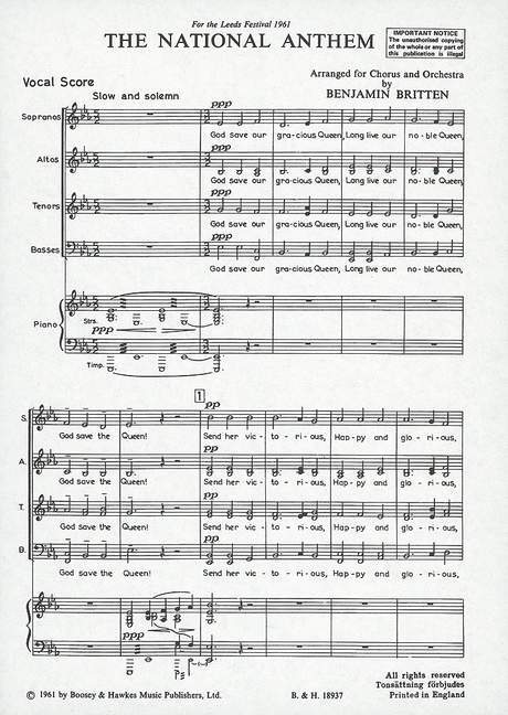 God Save The Queen. mixed choir (SSAATTBB) and orchestra. Réduction pour piano.
