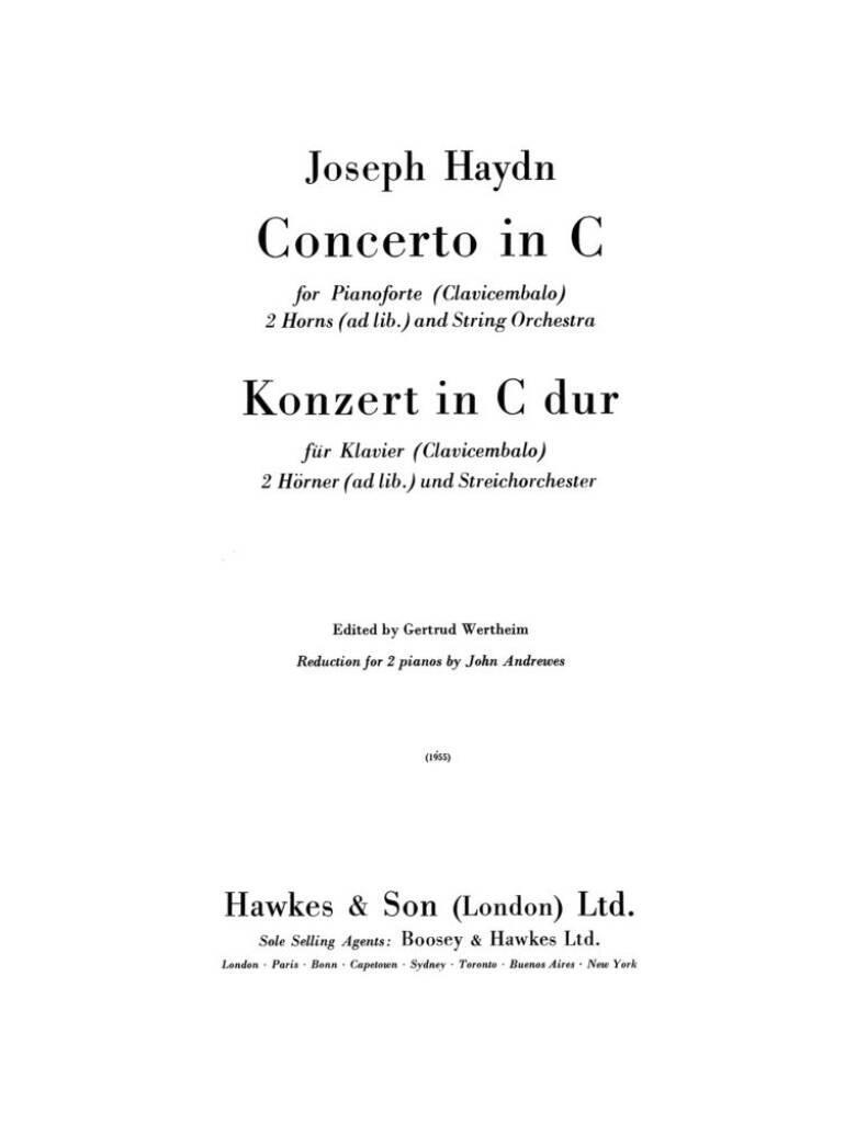 für Pianoforte (Clavicembalo), 2 Horns (ad lib.) and String Orchestra. piano, 2 horns (ad libitum) and string orchestra. Réduction pour piano.