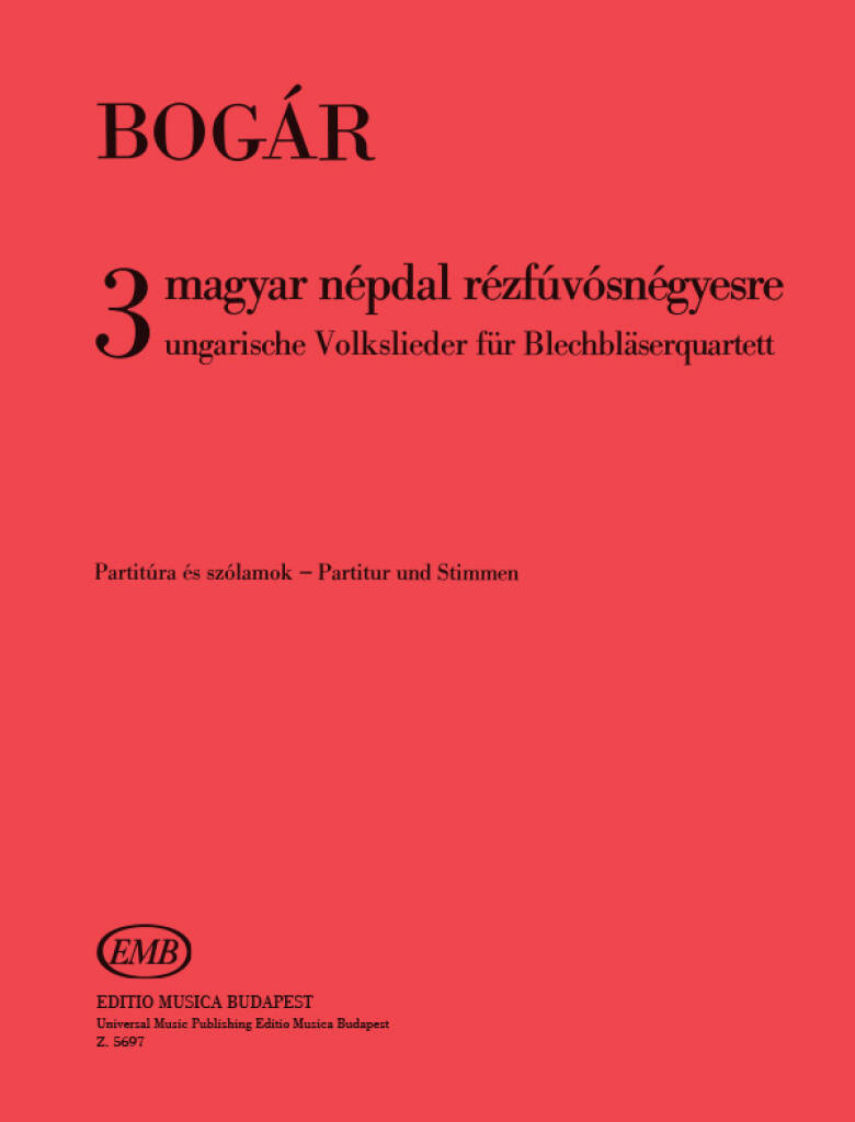 DREI UNGARISCHE VOLKSLIEDER FUR BLECHBASERQUARTETT MUSIQUE D'ENSEMBLE