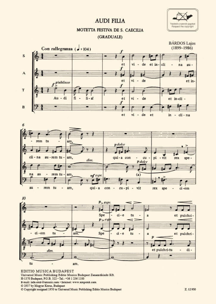 AUDI FILIA MOTETTA FESTIVA DE S. CAECILIA (GRADU CHANT