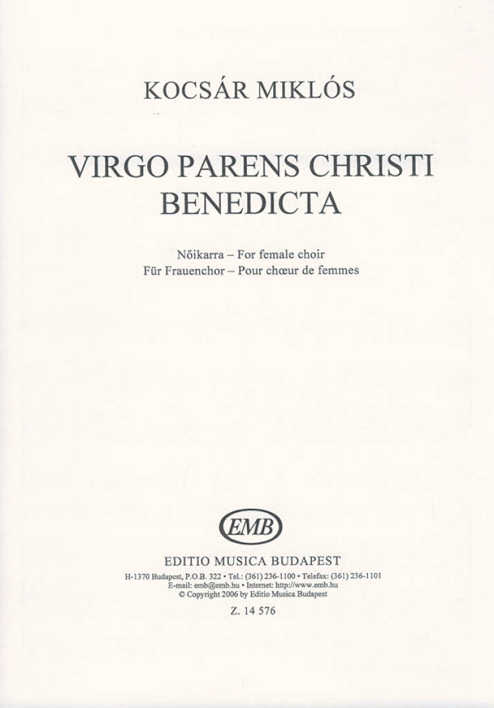 VIRGO PARENS CHRISTI BENEDICTA FUR FRAUENCHOR