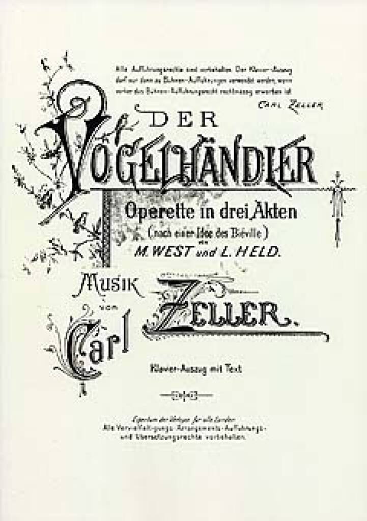 CARL ZELLER: DER VOGELHANDLER (VOCAL SCORE)