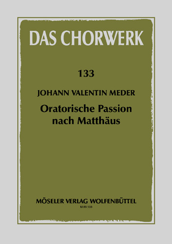"Oratorische Passion nach Matthäus". 133. soloists (TB), mixed choir (SSATB), 2 treble recorders, 2 oboes, strings and basso continuo. Partition.