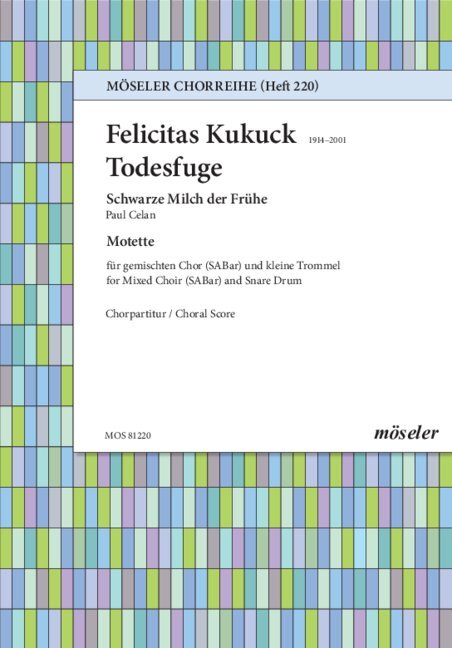 FELICITAS KUKUCK : FUGUE OF DEATH - PARTITION DE CHOEUR ET CAISSE CLAIRE ( 20 EXEMPLAIRES MINIMUM)