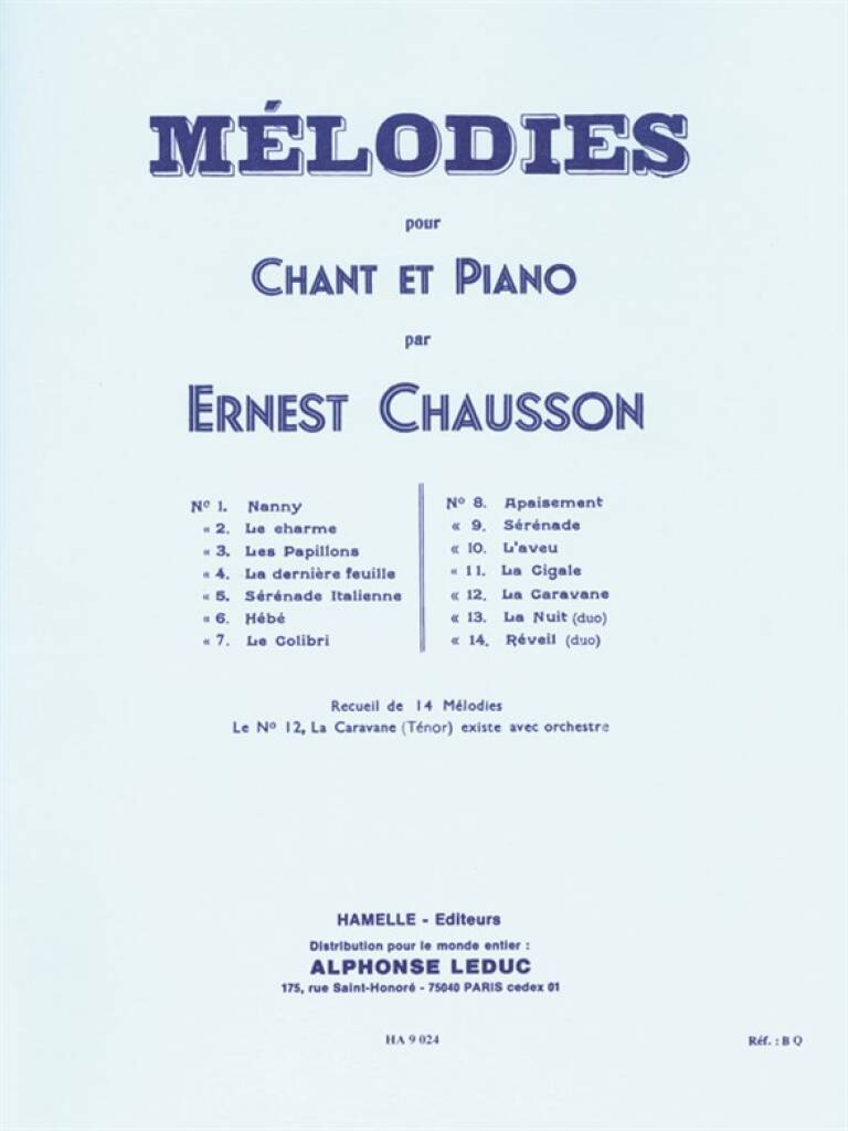 CHAUSSON 14 MELODIES VOICE & PIANO BOOK