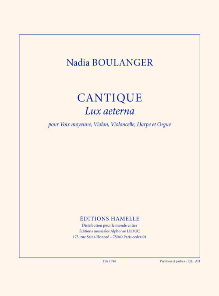 BOULANGER N: CANTIQUE (LUX AETERNA) POUR VOIX MOYENNE, VIOLON, VIOLONCELLE, HARPE ET ORGUE (PARTITIO