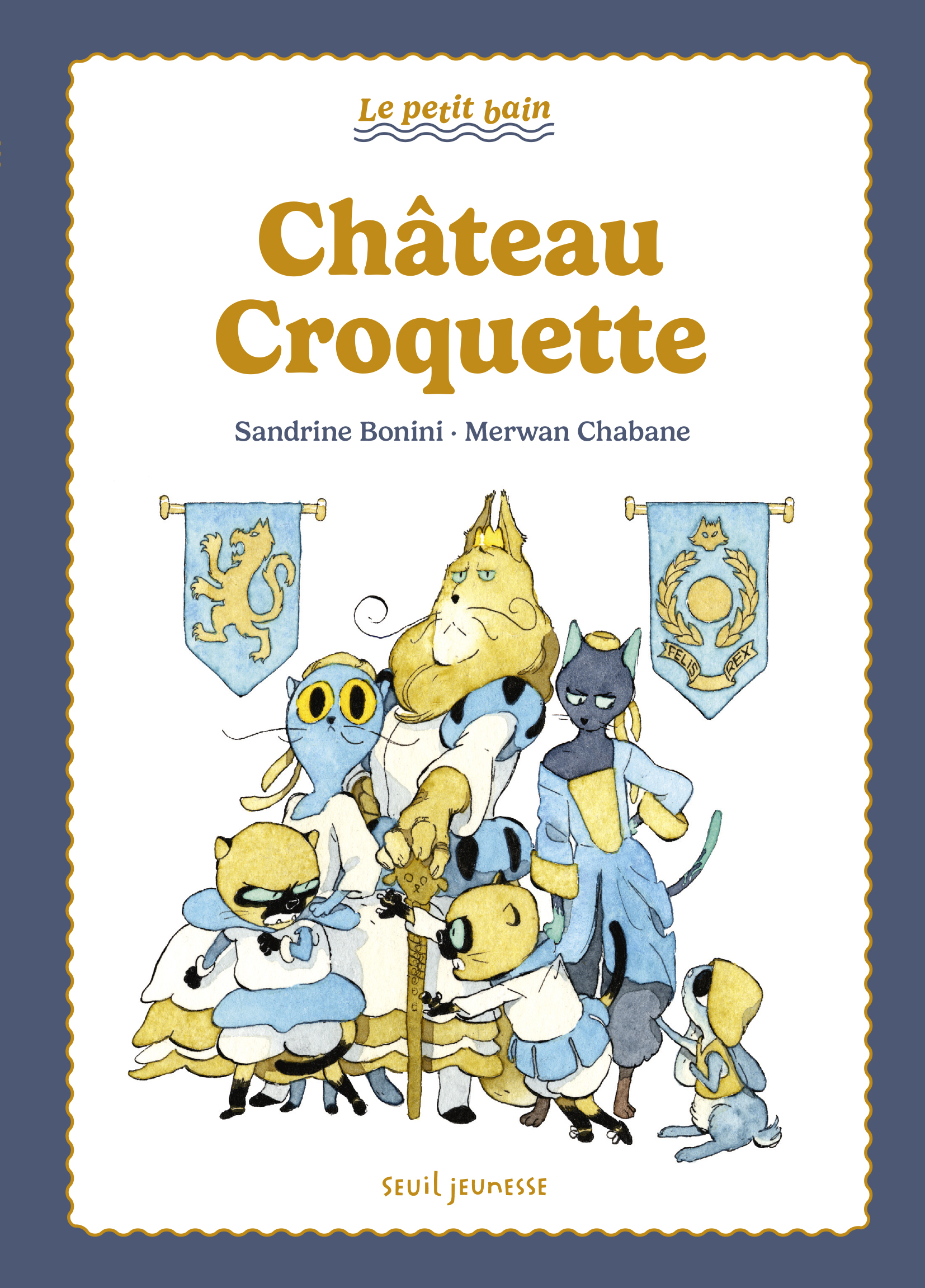 "Le petit bain" : des histoires pour se lancer dans la lecture avec ou sans bouée ! Bienvenue à Château-Croquette ! Ici, on miaule pour un oui ou pour un non, on utilise des litières royales et des gamelles en or. Miaou ! Vous aimeriez faire une petite visite ? Alors, suivez la guide ! De félines aventures, à découvrir en famille, à partir de 7 ans.