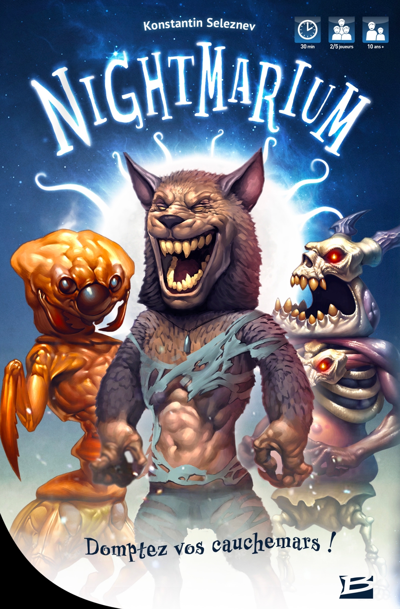 Créez vos propres créatures de cauchemar dans ce jeu rapide, amusant et accessible. Durant des siècles, les maîtres de l’ Ordre des Rêveurs ont étudié les étendues infinies des songes humains. Seul un recoin de ces contrées oniriques est resté hors d’atteinte : le Nightmarium , peuplé par les abominables Terreurs nocturnes , fragments de cauchemars humains. Créez des monstres en combinant 3 fragments de Terreurs nocturnes : tête, torse et jambes. Gérez votre main et utilisez les pouvoirs de vos créations pour détruire celles de vos adversaires. Le premier joueur à compléter 5 créatures remporte la partie. Mais soyez prudents, ces monstres échappent souvent au contrôle des rêveurs pour s’attaquer les unes aux autres et s’entredévorer ! Contenu : Un livre sur les créatures de cauchemar et ceux qui les ont découvertes 112 cartes 1 poster Âge : dès 12 ans. Joueurs : 2 à 5 Durée moyenne : 20 minutes. Auteur : Konstantin Seleznev