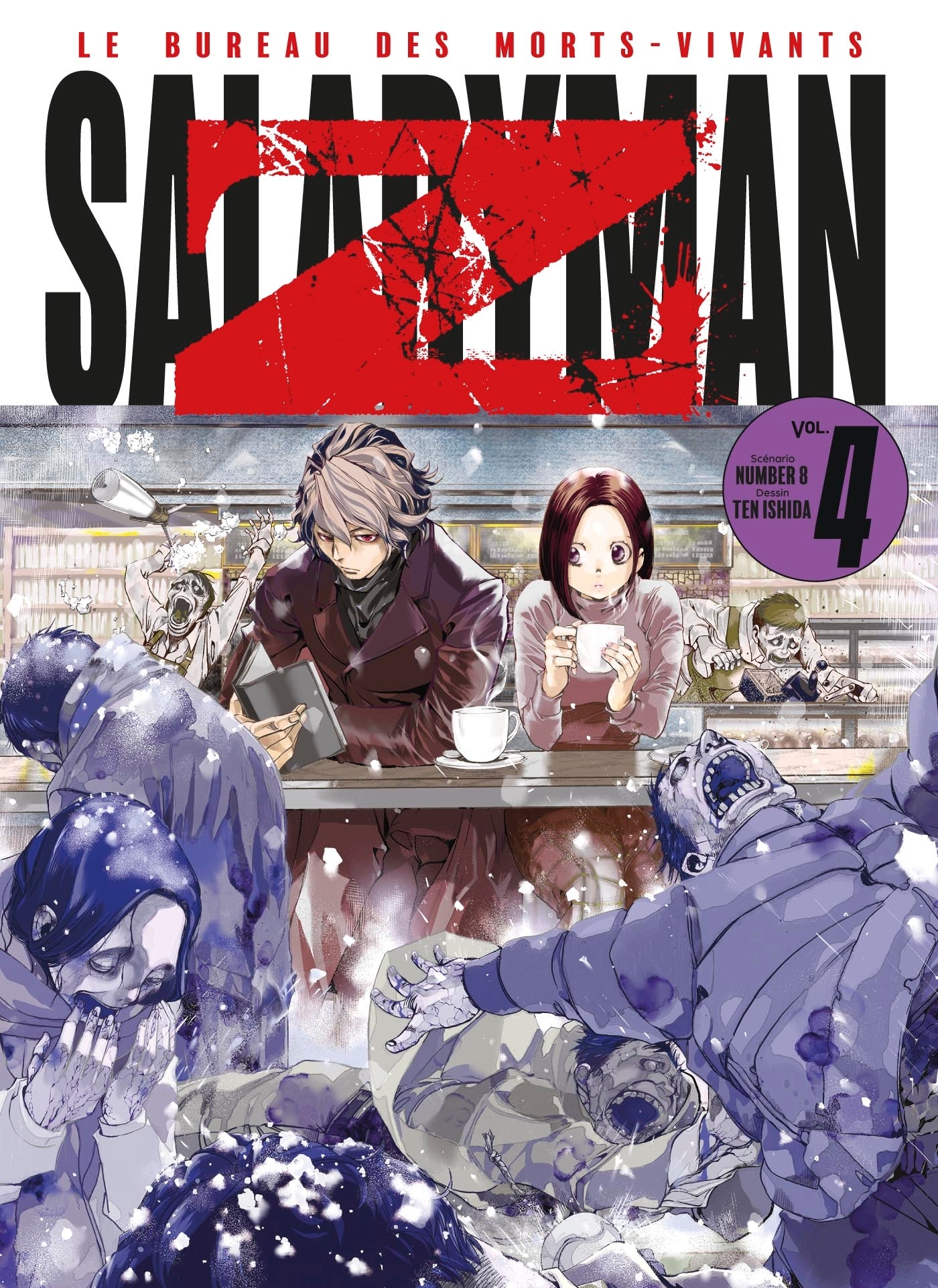 Yûsaku Maeyamada décide de déménager les bureaux de Takefuku Co. Ltd. en pleine pandémie ! Évidemment, l'opération tourne vite au chaos : même les photocopieuses-boucliers n'empêchent pas les victimes. Pas facile de faire face à d'anciens collègues transformés en morts-vivants ! Les portes du Neo Shinbashi Building s'ouvriront-elles pour l'équipe de Maeyamada ? Un esprit corporate à toute épreuve suffira-t-il à survivre à cette apocalypse zombie ? Après Abura, NUMBER8 revient dans le catalogue Panini avec sa dernière série en date : Salaryman Z. S'il est au scénario, c'est le jeune Ten Ishida qui signe les dessins et fait ses débuts dans l'Hexagone avec cette oeuvre. Ce binôme de choc nous propose un récit à la croisée des genres, revisitant l'univers post-apocalyptique zombie tout en offrant une critique percutante de la société. À travers son personnage principal, ce manga nous plonge dans le management japonais à l'ancienne tout en confrontant ses héros à un monde en mutation, bien au-delà de l'invasion des morts-vivants. Une oeuvre qui réussit à la fois à capturer l'intensité de l'apocalypse et à susciter une réflexion profonde sur le monde du travail.