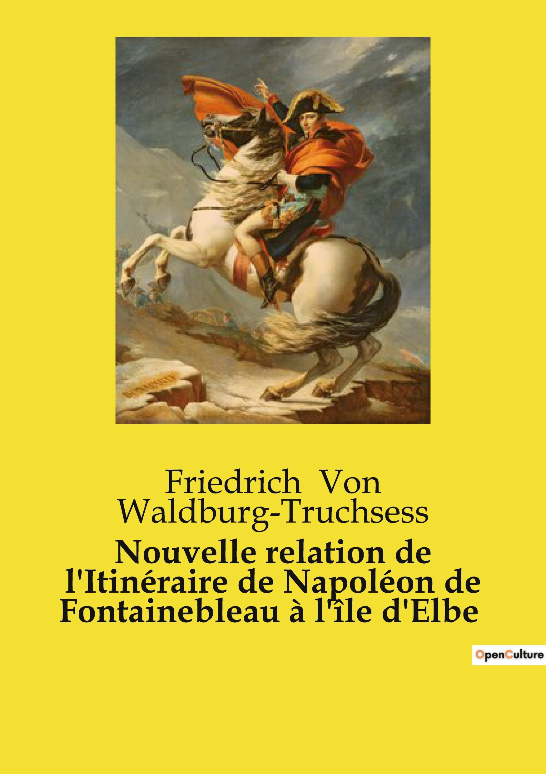 "Nouvelle relation de l'Itinéraire de Napoléon de Fontainebleau à l'île d'Elbe" est un ouvrage écrit par Friedrich von Waldburg-Truchsess, un aristocrate allemand et écrivain du XIXe siècle. Ce récit relate le trajet de Napoléon Bonaparte depuis Fontainebleau, en France, jusqu'à son exil sur l'île d'Elbe en 1814. L'auteur offre des détails sur les événements et les circonstances entourant ce déplacement historique, fournissant ainsi un aperçu des derniers moments de Napoléon sur le sol français avant son premier exil.