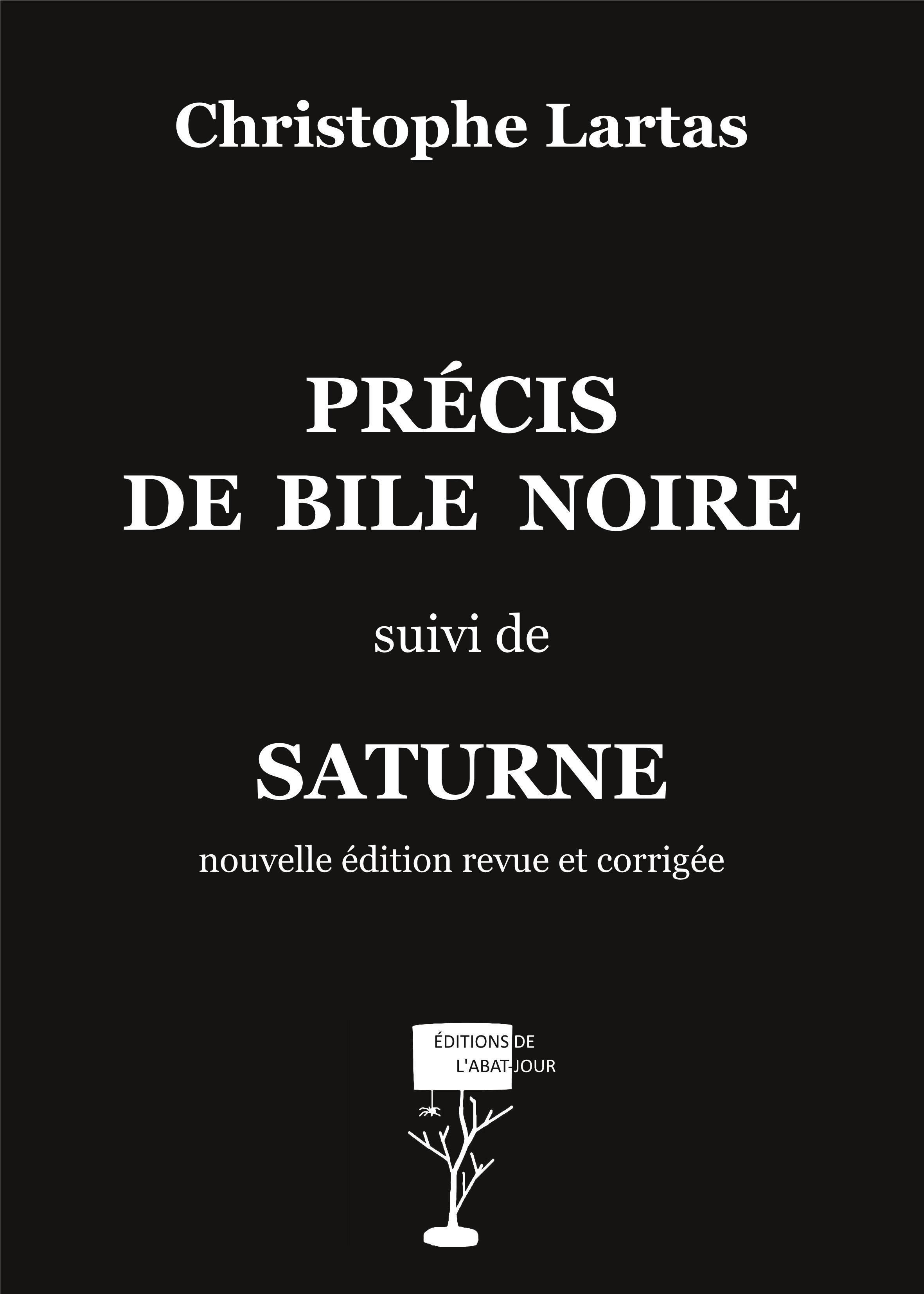 Julien Vénom. Jean Vormme. Charles Uriel. Grégoire Unnrel. Le premier rêve d’invoquer les Grands Anciens ; le deuxième veut communiquer avec l’Univers ; le troisième verse dans la magie noire ; et le dernier envisage le néant. Quatre personnages en quête d’Absolu, rongés par les germes de la folie, perdus dans un monde voué au chaos. Sous forme de courts tableaux oniriques et poétiques, parfois sarcastiques ou violents, « Précis de bile noire » narre l’errance de ces âmes torturées, saints martyrisés par leur propre chair, et nous livre leurs anti-Évangiles flamboyants, où la putrescence côtoie le sublime. Récit fantastique, drame féroce, épopée sanglante, festin cannibale : « Saturne » est tout cela à la fois. Cet hommage halluciné aux « Chants de Maldoror », qui renvoie l’humanité à sa fragilité originelle, proie d’un invulnérable démon — héraut de la Nature souveraine —, ravive avec délectation le cosmicisme cher à Lovecraft. C’est également la critique acerbe de sociétés à l’agonie, où l’inversion des valeurs fait loi, vitriolées par la plume de l’auteur puis taillées en pièces par son funeste héros. Réunis en un concentré de noirceur, ces deux textes dressent un portrait sans concession de l’être humain, entité dérisoire écrasée par la perspective du néant, à la merci de forces qui le dépassent.