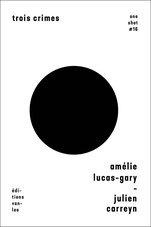 Livre réalisé par Amélie Lucas-Gary et Julien Carreyn. Un réalisateur demande à une écrivain un petit texte pour son prochain film, ce texte serait comme le sous-titre d'un film qui n'existe pas encoreâ-  Trois crimes est donc un sous-titre. Donc, une écriture assujettie. Le dialogue de ce qui n'est pas encore. Le film à venir est absent ou déjà disparu. Le sous-titre devenu poème trouve naturellement son objet : orchestrer la disparition, comme motif ou passe-temps avant l'arrivée des images. Il faut donc pas moins de Trois crimes, trois disparitions sanglantes, trois façons de faire mourir, avec violence et sans fard, sans filtre posé sur des photos trop lisses, Trois crimes de femmes par des femmes (c'est rare), c'est tragique, c'est grec, balte, peut-être celte, c'est avant la naissance (ou la création). Amélie Lucas-Gary pose une écriture d'avant la naissance, des corps mêlés dans la lutte et plongés dans le chaos d'où sortira quelque chose comme de la création.