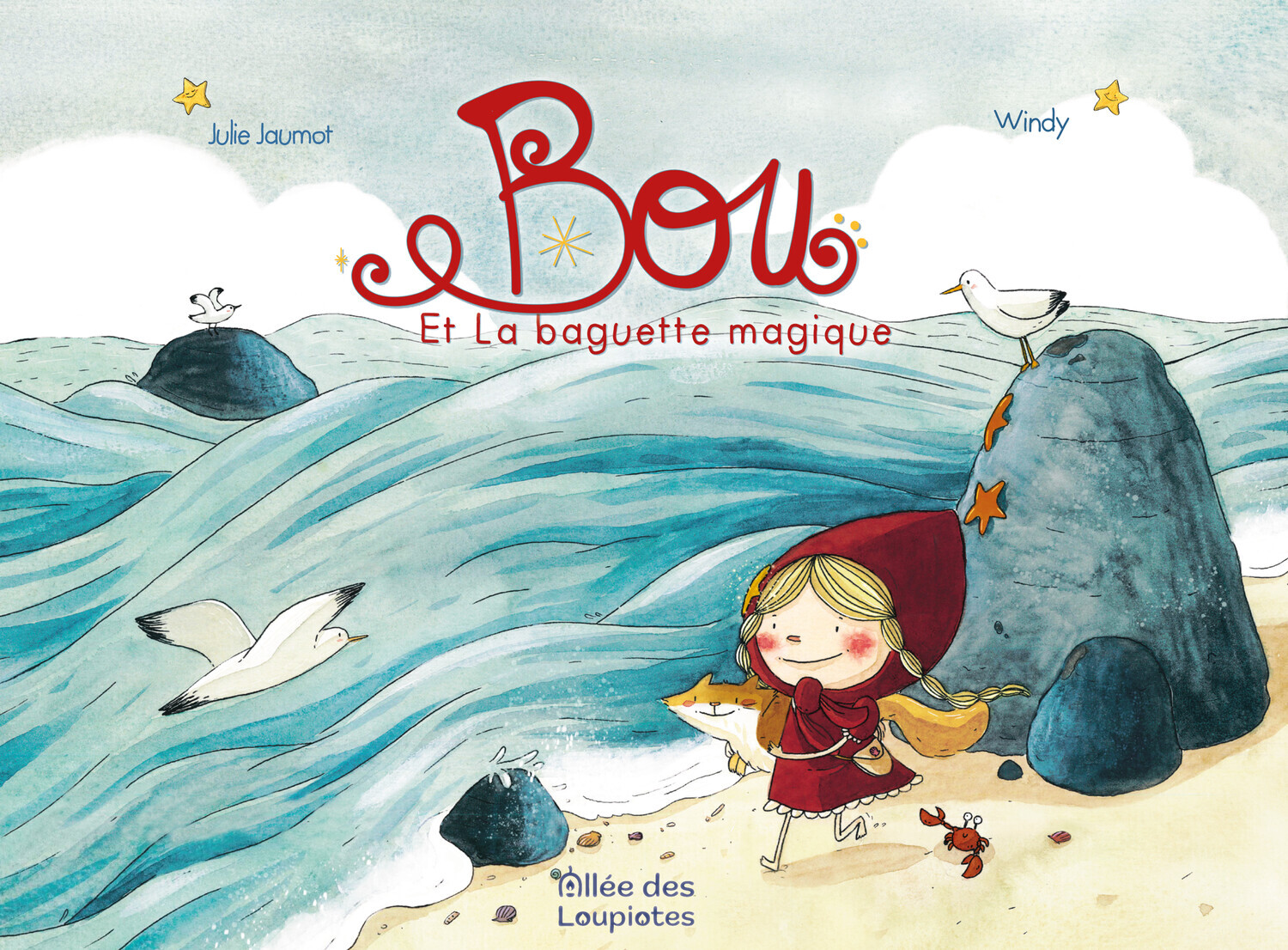 C’est l’été. Accompagnée de ses parents et de son inséparable compagnon à quatre pattes, Papillotte, Bou part à la mer. Là-bas, entre le murmure des vagues et la caresse du sable chaud, elle le voit, déposé par l’écume : un morceau de bois flotté, d’un blanc de nacre, tordu par le sel et le temps. Pour Bou, aucun doute : c’est elle. Sa baguette magique ! Elle l’agite vers le ciel, essaie de transformer les galets en trésors, les nuages en barbe à papa.