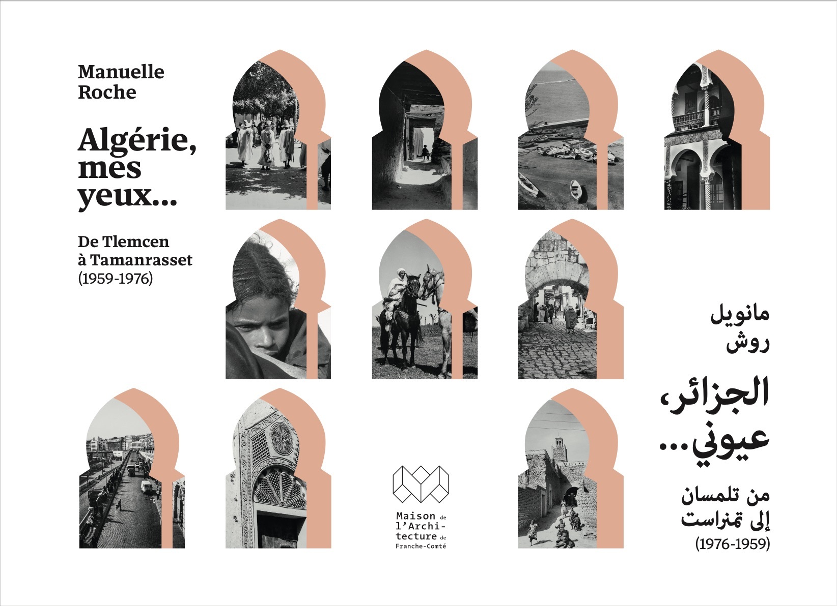 Il y a une quarantaine d’années, dans les écoles d’architecture ou dans les librairies, les étudiants, les architectes et le grand public découvraient, captivés, le livre d’André Ravéreau Le M’Zab, une leçon d’architecture au sein duquel les photographies de Manuelle Roche faisaient bien plus qu’illustrer le texte : elles lui donnaient sa dimension sensible, puissance accordée au ressenti des lieux, des espaces, des habitants. Lors de cycles cinématographiques sur l’architecture vernaculaire, la Maison de l’Architecture de Franche-Comté a pu programmer des films tournés par Manuelle Roche dans la vallée du M’Zab mais aussi d’autres films qu’elle avait réalisés le long de l’oued El Abiod dans les Aurès, en Kabylie, à Tlemcen ou à Alger – films sur pellicule qu’elle avait eu la gentillesse de nous prêter pour en assurer leur numérisation. Les liens avec Maya Ravéreau, fille de Manuelle Roche et André Ravéreau, et l’association ALADAR qui cherche à promouvoir le travail de ses parents, se sont maintenus au gré d’expositions pour aboutir à la réalisation de ce livre, maquette inédite. Avec humanité et érudition, Manuelle Roche nous transmet son amour de l’Algérie, de ses paysages, de son architecture et de ses habitants, au gré de pérégrinations qui l’ont menée de la côte méditerranéenne jusqu’au plus profond du Sahara. Création littéraire et photographique, cet ouvrage est aussi, en quelque sorte, une œuvre testamentaire, l’auteure étant décédée peu de temps après l’avoir terminé. Conservée en l’état, sans transformation dans le choix et l’ordre des photographies ni modification des textes et des légendes, la maquette du livre est enrichie d’une traduction en arabe des textes français.