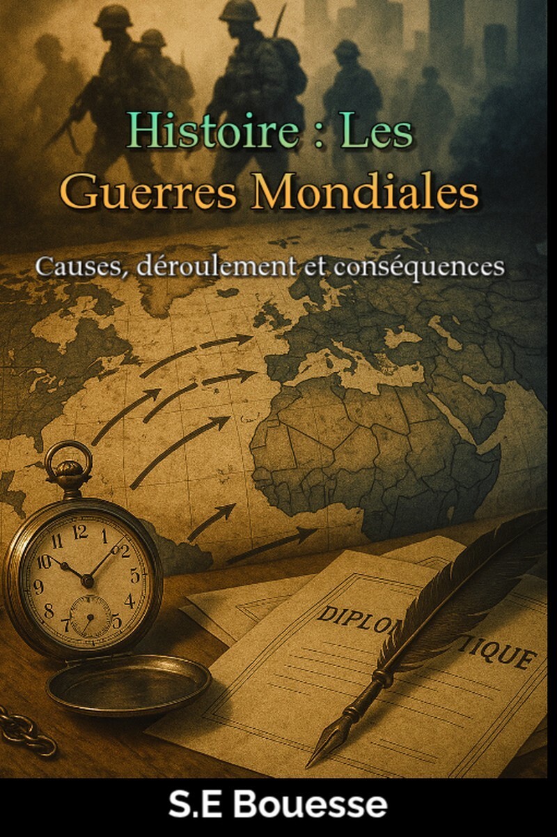 Cet ouvrage intitulé Histoire : Les Guerres Mondiales. Causes, déroulement et conséquences, écrit par S.E Bouesse, propose une analyse claire et structurée des deux grands conflits qui ont bouleversé le XXᵉ siècle. À travers une étude rigoureuse des causes profondes, des enjeux géopolitiques et des mécanismes historiographiques, l’auteur éclaire la complexité des alliances, des rivalités économiques et des idéologies qui ont façonné la dynamique mondiale. En examinant la notion de guerre totale, le front intériorisé et la genèse globale des conflits, ce livre offre aux lycéens une compréhension fine et nuancée de l’évolution des sociétés et des mémoires collectives. Un outil essentiel pour saisir l’impact durable des Guerres Mondiales sur le monde contemporain et développer une lecture critique des grands événements historiques. Cet ouvrage scolaire est un essai, une recherche académique.